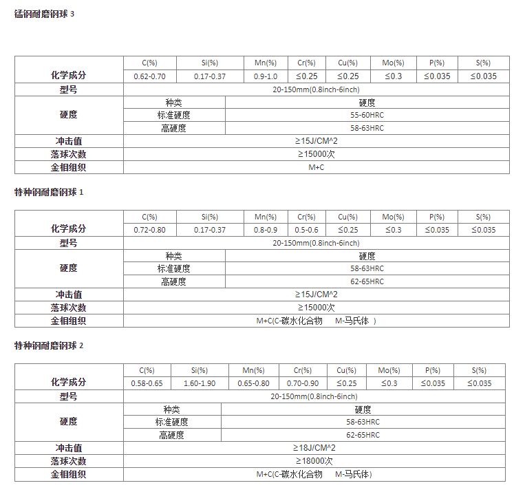 锻铸钢球为高碳钢抛光设备钢球、锰钢抛光设备钢球及及持种钢抛光设备钢球,内内径20-70mm和内内径80-150mm钢球区别利用先进典型的全重新轧钢生產制造线和全重新热锻生產制造线。